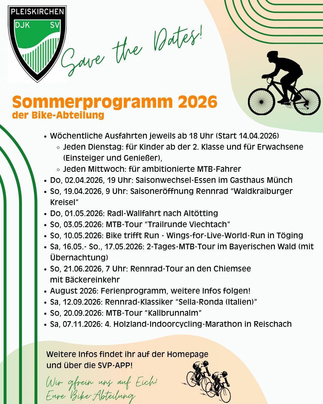 - Vielfalt: Egal, ob Fußball, Fitness, Fahrrad, Skifahren, Stockschießen oder Leichtathletik, wir bieten für alle etwas.